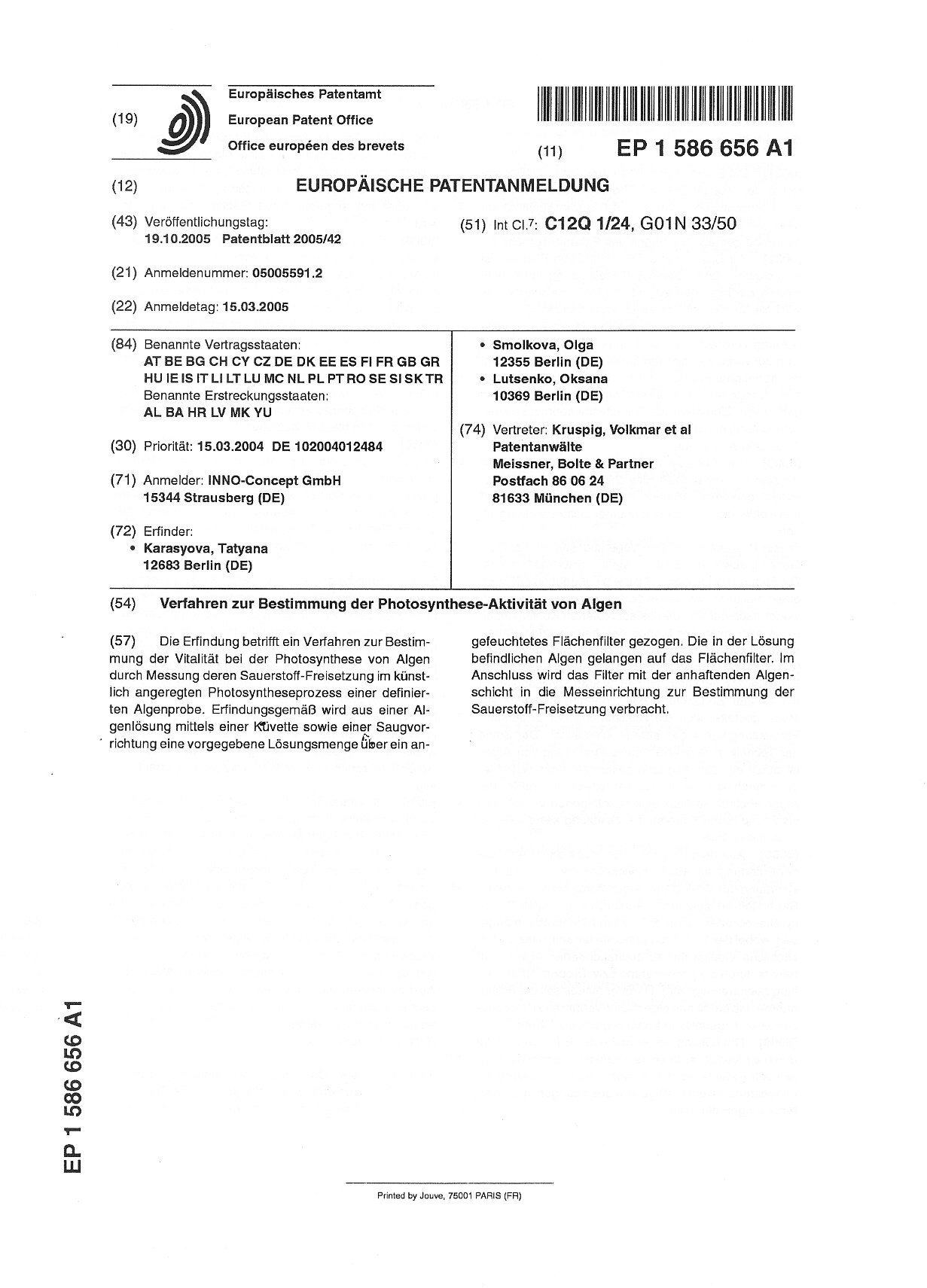 Europäische Patentanmeldung: