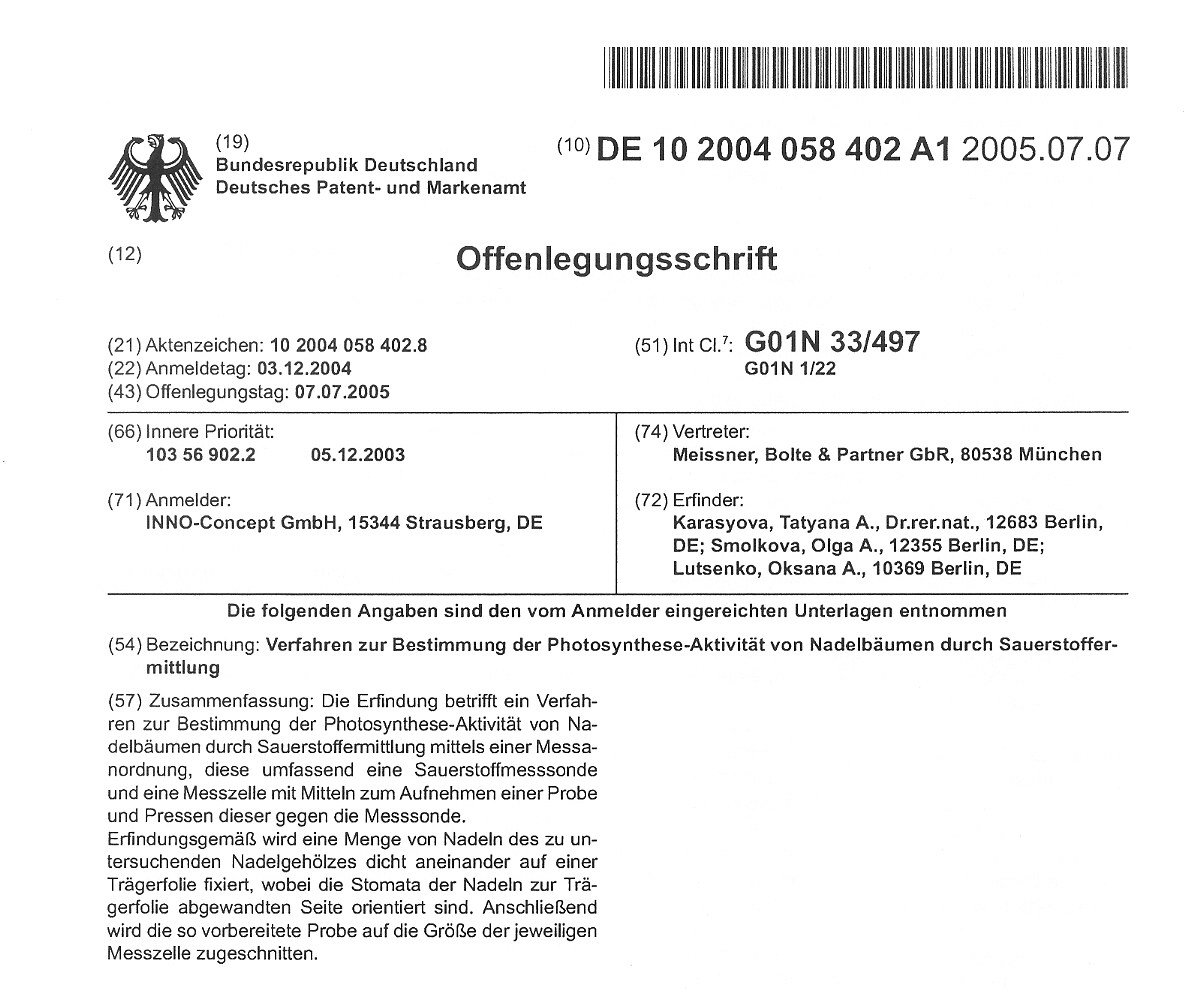 Verfahren zur Bestimmung der Photosynthese-Aktivität von Nadelbäumen durch Sauerstoffermittlung